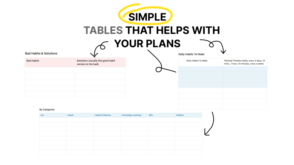 - A Bad Habits and Solutions table